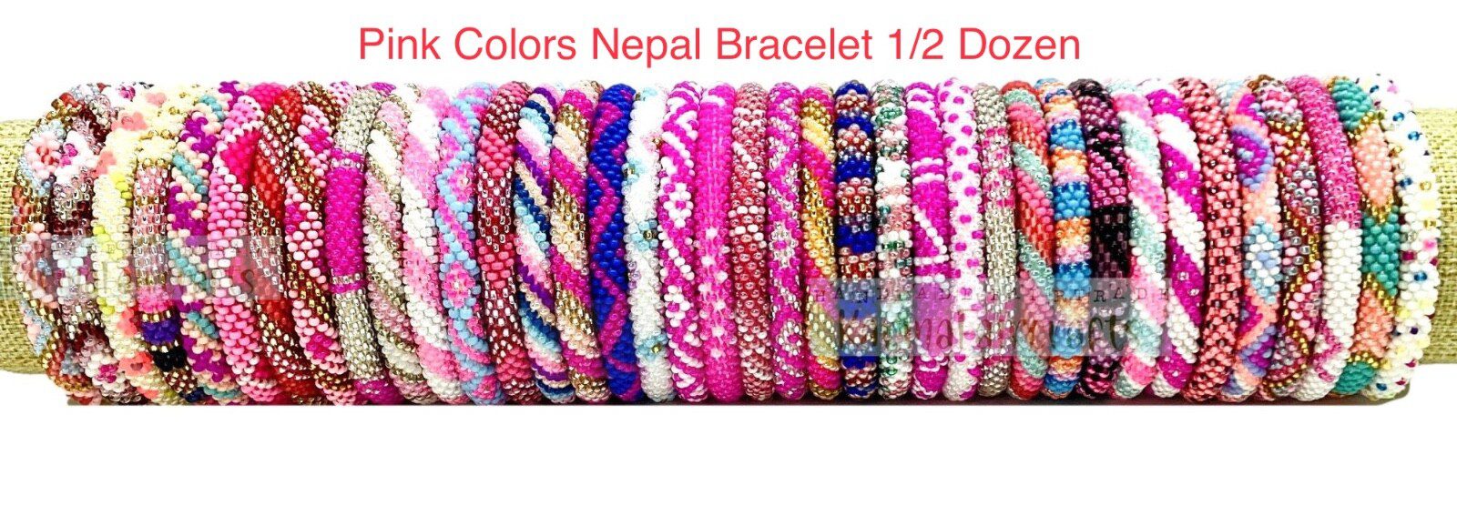 6 Pieces Wholesale Nepal Bracelets Pink Colors Theme Random Selection. Premium Glass Seed Beads. Ships from USA.