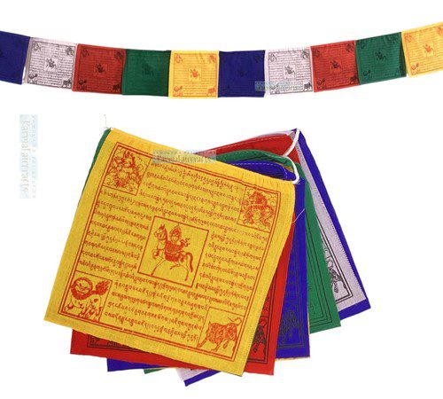 Each flag represents a different aspect of nature, and when strung together, they create a harmonious and peaceful atmosphere, perfect for your yard, garden or outdoor living space. Let the wind carry your prayers and blessings as you hang these flags and connect with the divine energy of the universe.